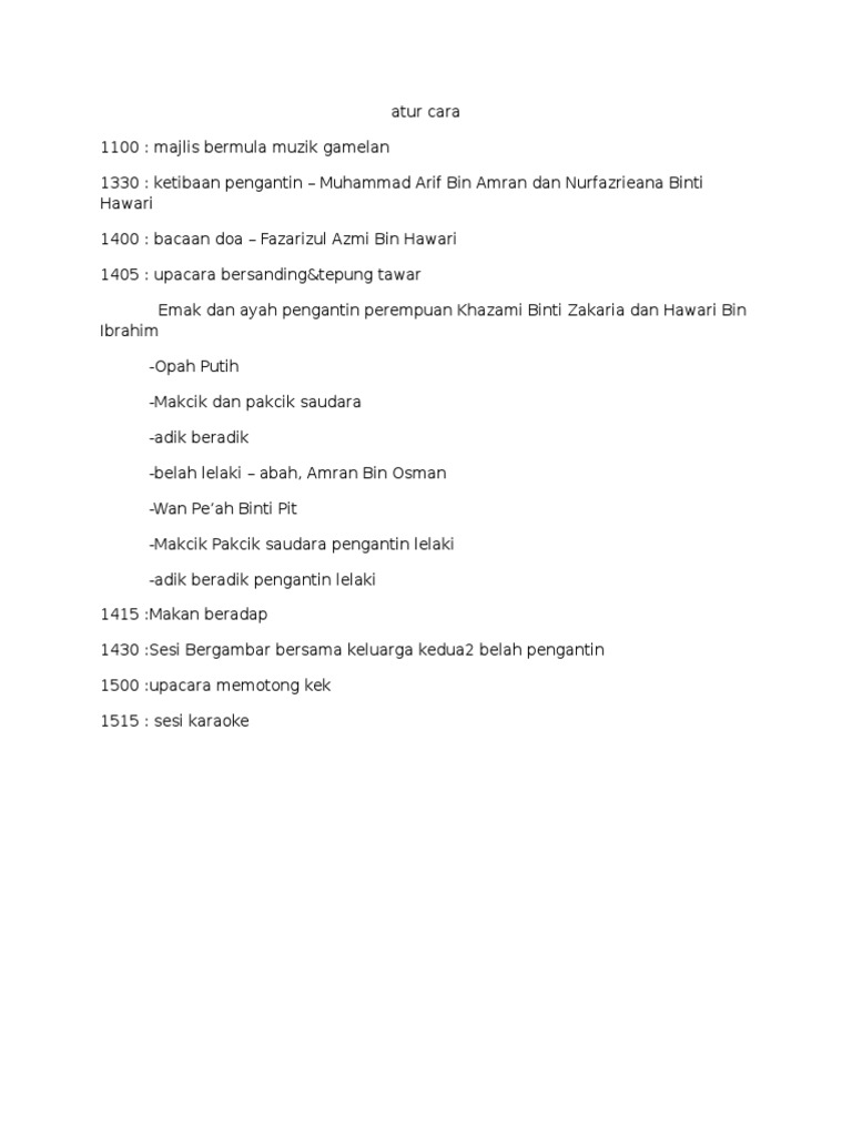 Atur Cara Majlis Kahwin / Ingin tahu cara daftarkan ahli keluarga yang tidak mempunyai mysejahtera kedalam akuan mysejahtera anda?. Masukkan maklumat majlis anda seperti nombor telefon, nama majlis dan alamat majlis diadakan. Jemput tetamu dengan kad jemputan kahwin yang paling menarik. Majlis perkahwinan eksklusif dengan harga yang mampu eksklusif tak semestinya mahal jom set date appointment dengan kami, lock date untuk wedding event 2020 cepatt kenapa sumira place? Cara dia tegur tak kena cara. Sila ambil tahu atur cara majlis dan ringankanlah tangan untuk membantu kesibukan keluarga pengantin di rumah mahupun di lokasi majlis.