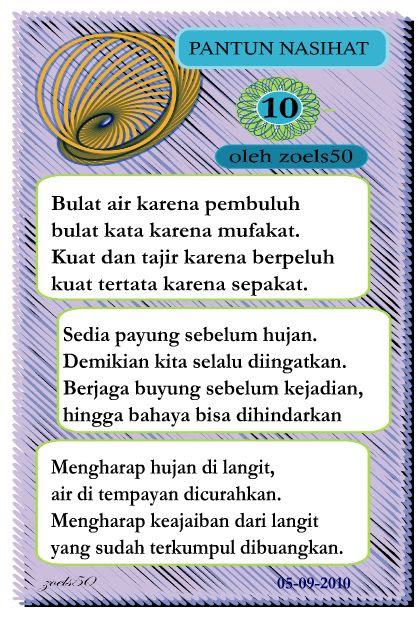 Sudah dapat gading bertuah, tanduk tidak berguna lagi. Sakit pandan tak tahukah duri, sakit badan tak tahukan diri. Ciri pantun empat kerat yang betul ialah a. Contoh pantun nasihat tentang budi pekerti these pictures of this page are about:contoh pantun nasihat. Jelas sekali bahawa pemantun mahu dirinya dikenang dengan sebutan nama baik, iaitu budi. Gaharu, cengal, giam, tak tahu, tak kenal, diam. Berminat nak belajar tentang saham patuh syariah klik sini ==>> saham. Contoh tujuannya serupa dengan pantun nasihat, yaitu memberikan pesan moral dan didikan kepada pendengar dan pembaca. Kumpulan contoh pantun jenaka, pantun nasehat, teka teki, agama, pendidikan, cinta, romantis, persahabatan, perpisahan, ulang tahun, anak dll. Air surut memungut bayam, sayur diisi di dalam kantung, jangan diikat resmi ayam, bertelur sebiji riuh sekampung. Maka, pemilihan maksud pantun adalah berbentuk nasihat tentang pembentukan akhlak dan sahsiah diri. Download lagu pantun nasihat mp3 gratis dalam format mp3 dan mp4. Ø penyajak memberitahu penjual mempelawa pembeli membeli barang yang baru keluar.