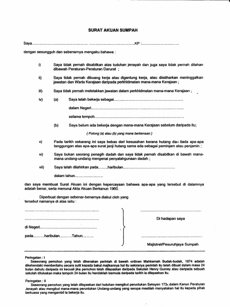 MOshims: Surat Akuan Sumpah Borang Spa 6b from static.fdokumen.com (am 80) surat akuan sumpah. Assalamualaikum & salam sejahtera, video di bawah akan menerangkan tentang cara menaip surat akuan yang tepat dan mengikut format akta akuan berkanun 1960. Berguna kepada sesiapa yang ingin berkhidmat dalam kerajaan. Dan saya membuat surat akuan sumpah ini dengan kepercayaan bahawa apa apa yang tersebut di dalamnya adalah benar serta menurut akta akuan berkanun …. 1131 x 1600 · jpeg. (closed ) ahad dan cuti am (sundays and public. Salah satu perihal penting tersebut adalah mengurus. Surat akuan sumpah ile bağlantı kurmak için şimdi facebook'a katıl.