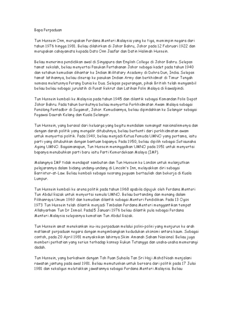 Sumbangan Tun Hussein Onn from imgv2-2-f.scribdassets.com Check spelling or type a new query. Tun hussein onn bapa perpaduan. We did not find results for: Maybe you would like to learn more about one of these? Tun hussein bin dato' onn was a malaysian politician who served as the 3rd prime minister of malaysia from the death of his predecessor abdu.